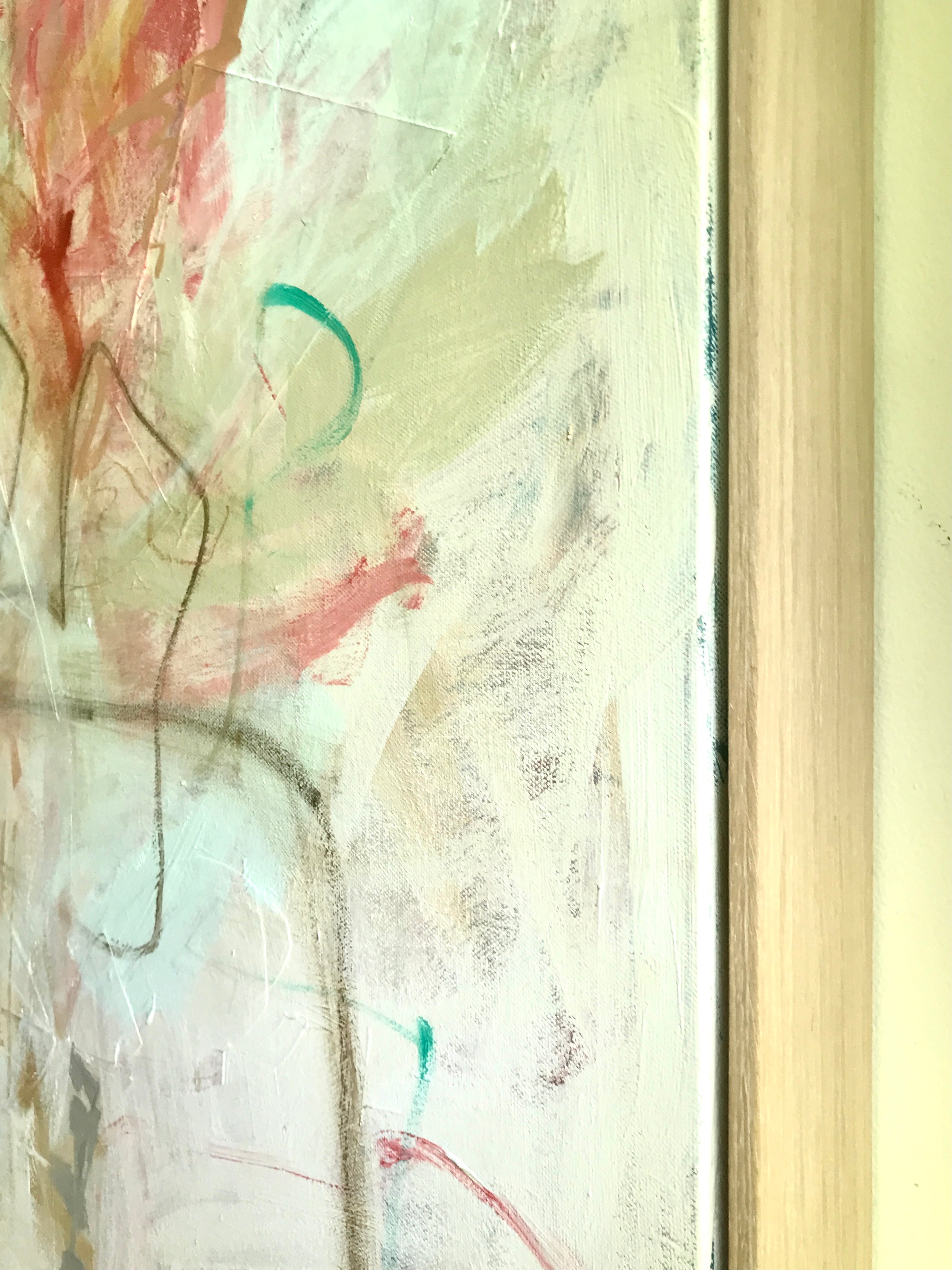 mixed media on canvas, in neutral wood floating frame