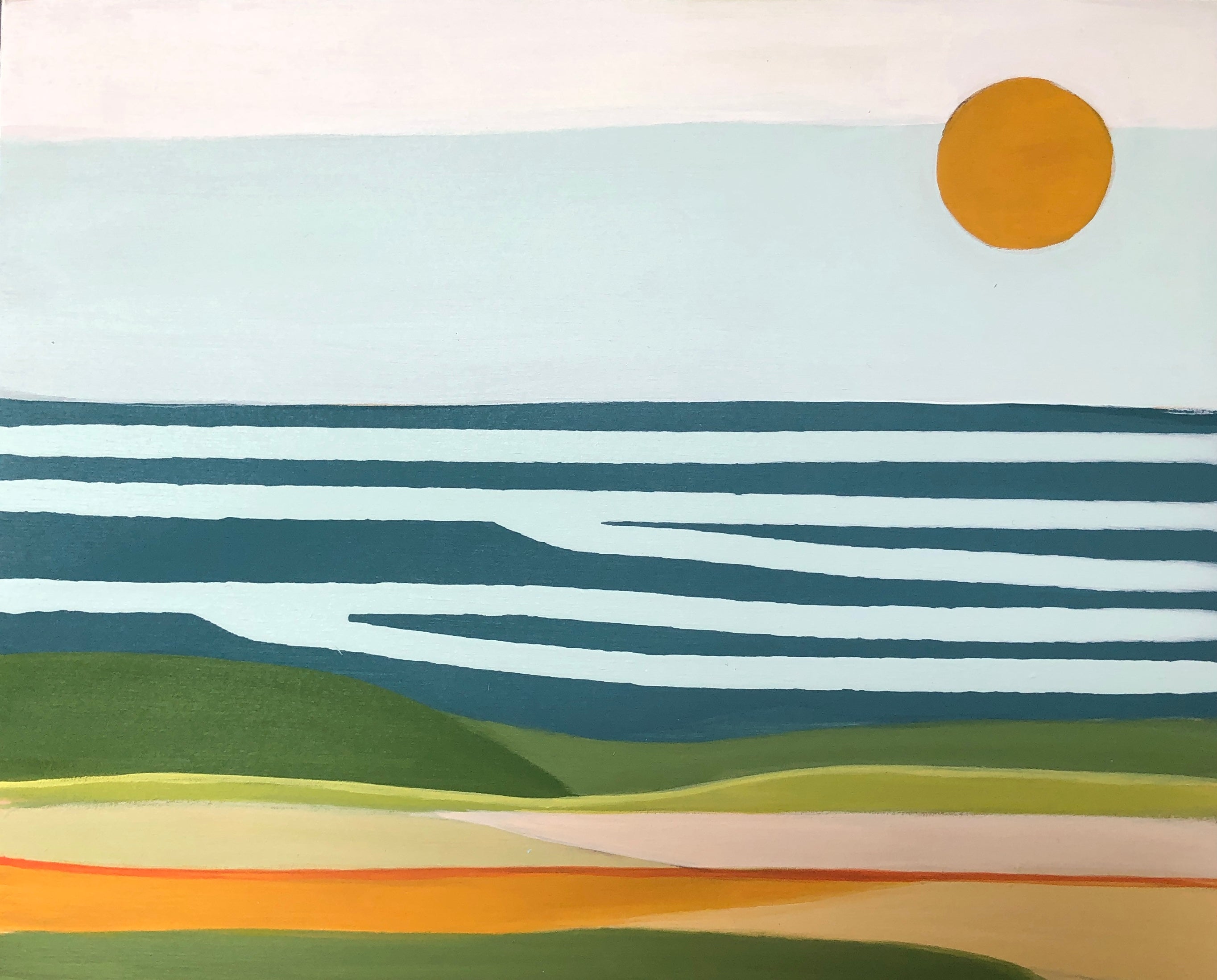 Cindy DeAntonio is a mixed media artist who uses distinct lines and shapes to create her unique and highly recognizable style. Her work is comprised of abstracts, modern interpretations of traditional lowcountry landscapes, and cubist inspired still lifes. She draws inspiration from a variety of sources including fashion, design and her natural surroundings. Cindys love of bold colors and balance are apparent in each one of her pieces. Her work have been featured in Coastal Living, Serena and Lily, Garden and Gun, and SIP magazine. Cindy grew up in Columbia, South Carolina and earned a Studio Art degree from the University of South Carolina. She currently lives on Isle of Palms, SC with her family.