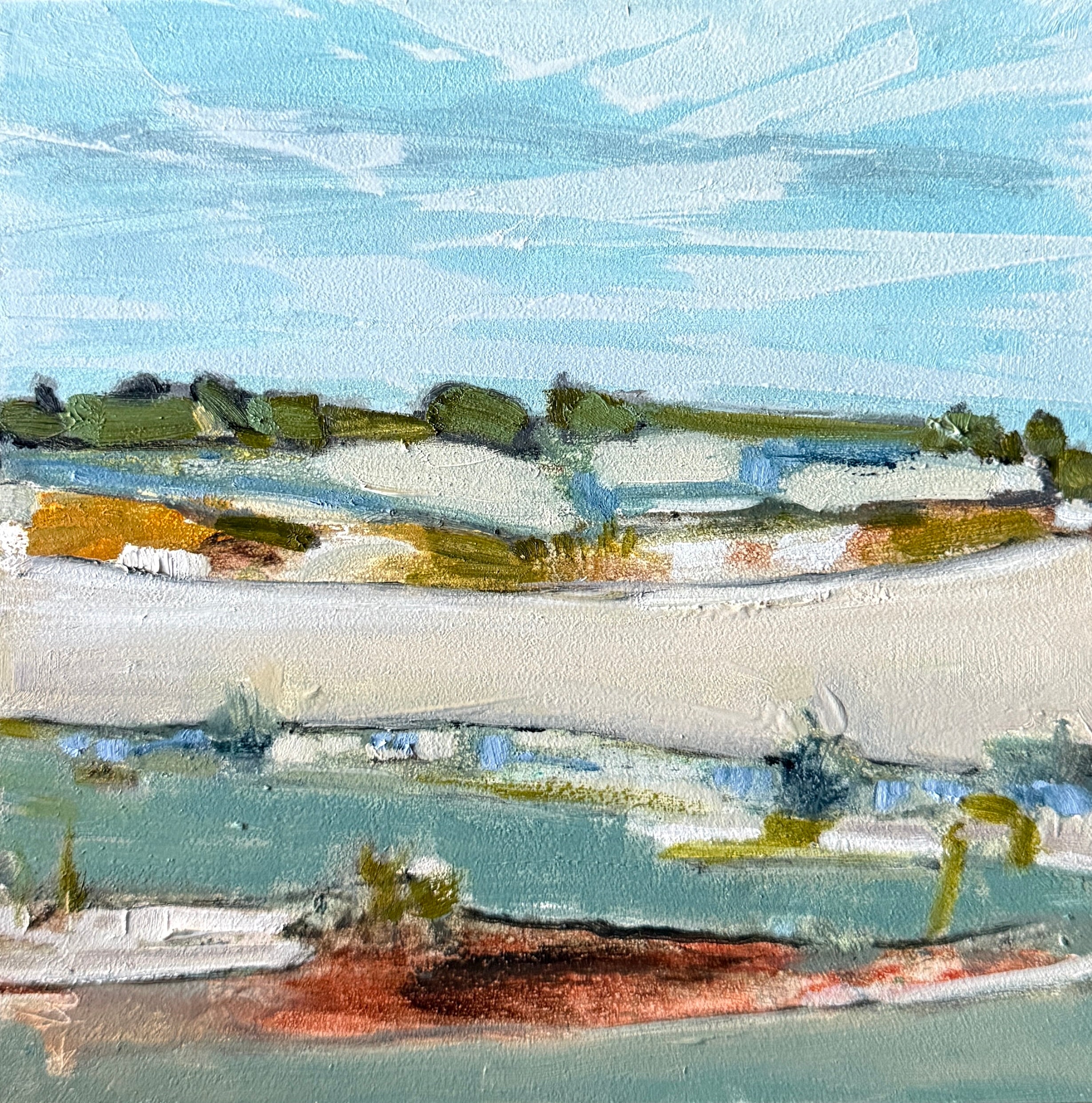 Ann Balzac Keane’s career in art began with no formal training, only a simple vision to fill the blank walls of her home. Over twenty years later, Keane has become an accomplished painter with a dedicated following of collectors and clients who appreciate her abstract works. “I am inspired by the natural world around me,” she explains from the screened porch of her Mt. Pleasant, SC home overlooking Charleston’s picturesque harbor. “I love colors and shapes that I see outside and try to make them come alive on my canvas.” Keane paints largely in oil. “I use a palette knife to carve lines and shapes to construct a canvas full of movement,” she says. “I love to build up layers of paint so that just a sliver of the original color peeks through. The blueprint of the landscape is secondary to the placement of the blocks of color.” In addition to the visual beauty around her, Ann’s art is music driven. “The sense of movement in my art is influenced by music – it’s an essential element of my process. Moving while I paint keeps the energy flowing,” says Keane. http://annbalzackeane.blogspot.com