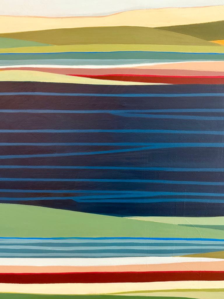 Cindy DeAntonio is a mixed media artist who uses distinct lines and shapes to create her unique and highly recognizable style. Her work is comprised of abstracts, modern interpretations of traditional lowcountry landscapes, and cubist inspired still lifes. She draws inspiration from a variety of sources including fashion, design and her natural surroundings. Cindys love of bold colors and balance are apparent in each one of her pieces. Her work have been featured in Coastal Living, Serena and Lily, Garden and Gun, and SIP magazine. Cindy grew up in Columbia, South Carolina and earned a Studio Art degree from the University of South Carolina. She currently lives on Isle of Palms, SC with her family.