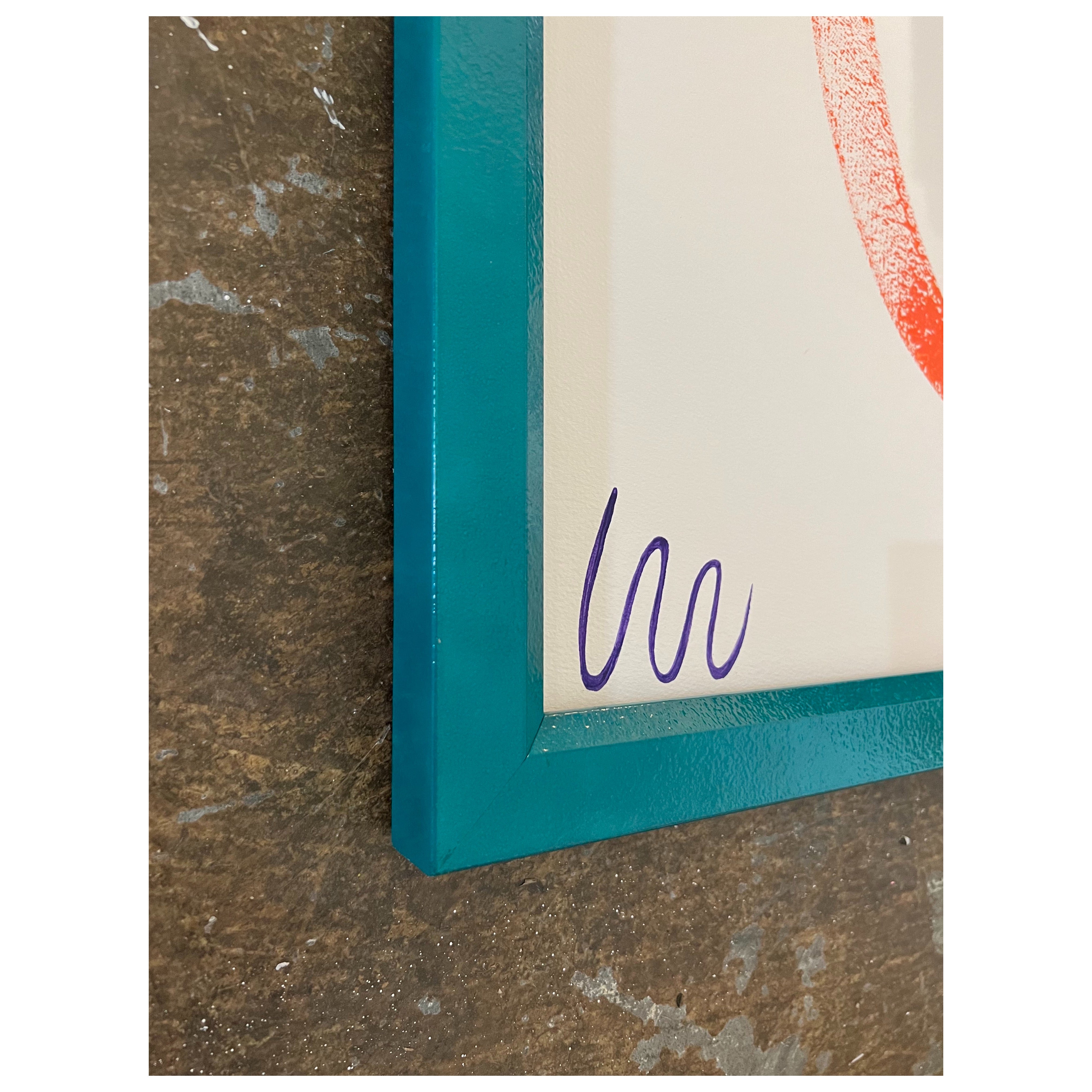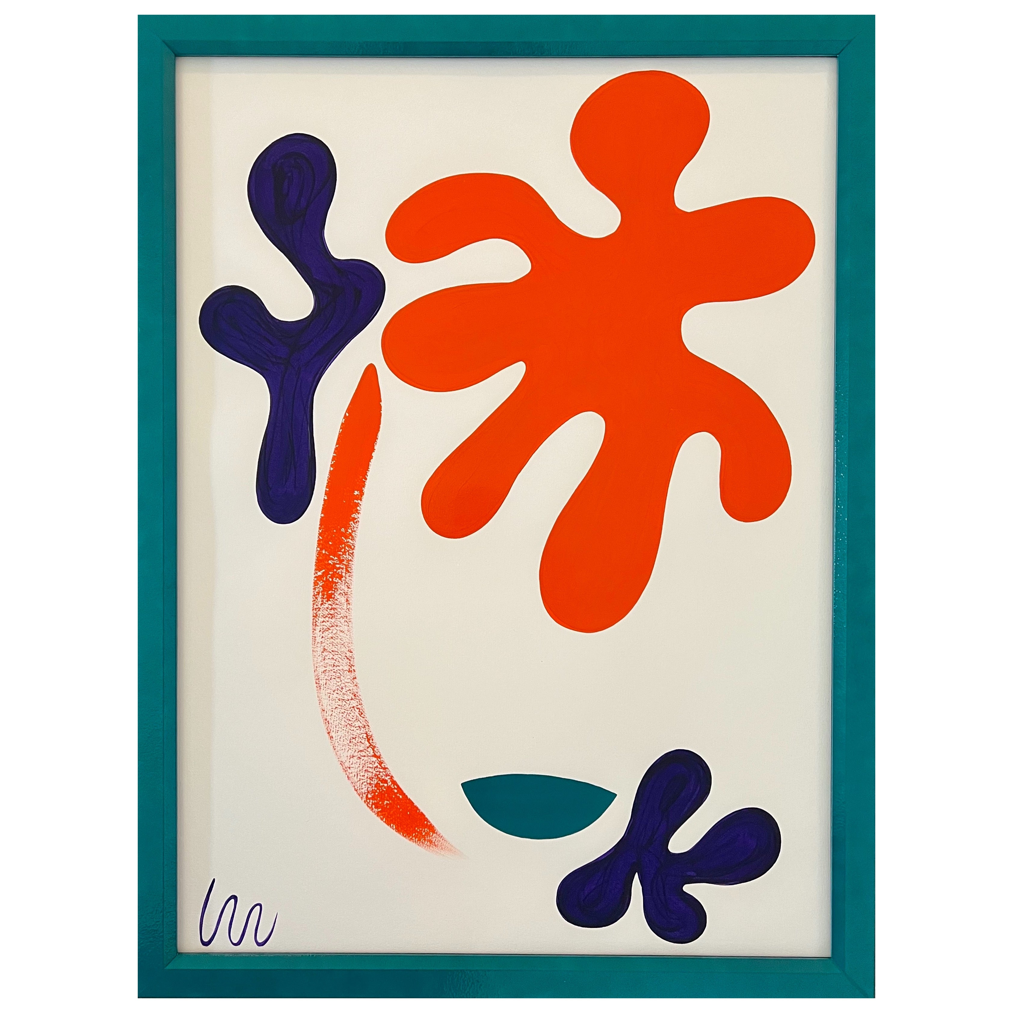 acrylic on paper, in turquoise frame with museum glass