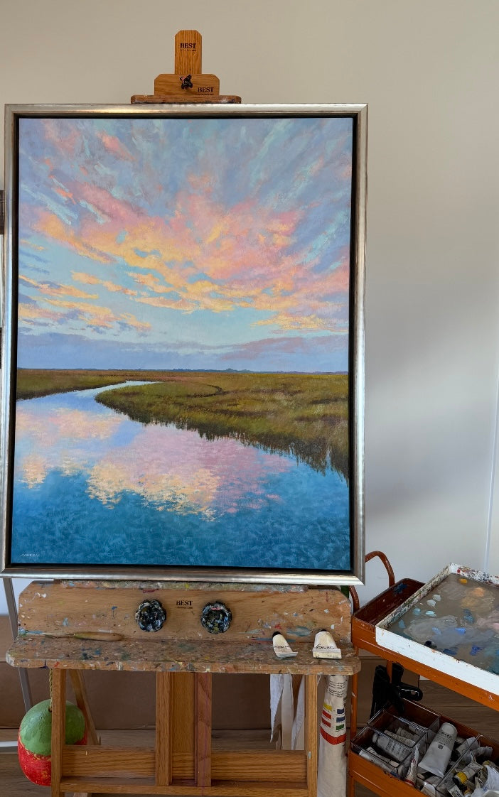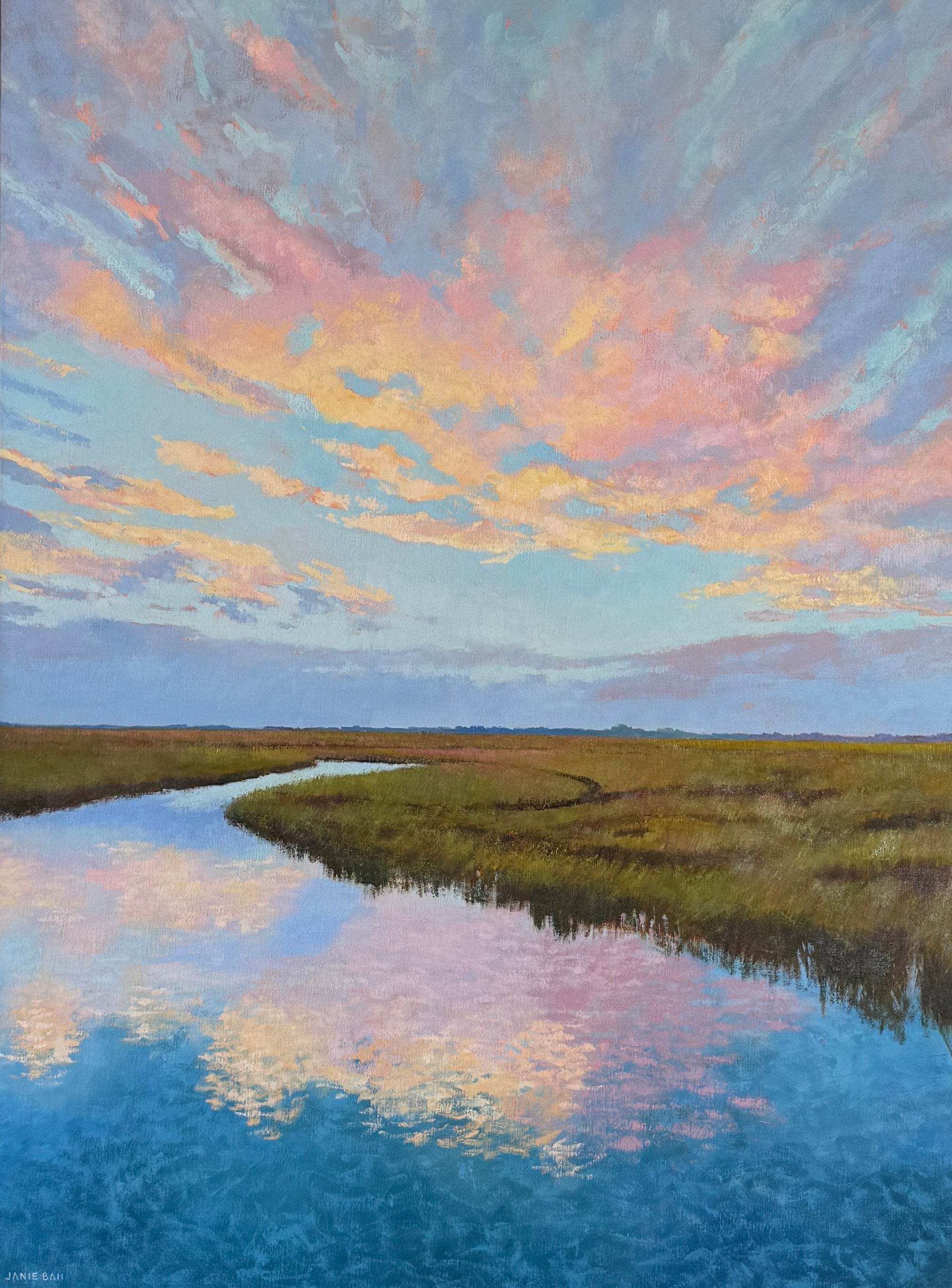 Janie Ball a Charleston native. The Rhode Island School of Design (RISD) graduate has had a successful marketing career winning ADDY and CASE Awards prior to returning to fine art full time. Her paintings are composed of bold thoughtful shapes of color which when visually combined by the viewer "paint" the image, be it en plein air, contemporary realism, or abstract expressionism. The Charleston Artist Collective member’s paintings are in private and corporate collections including the Belmond Charleston Place and MUSC Children’s Hospital. Janie’s work has been exhibited in solo and group shows, as far away as Portland, Maine. In Spring of 2017, her painting “Out of the Blue” was selected as the Community Choice Winner for ArtPop Street Gallery of Charleston, to be featured on an Adams Outdoor Advertising 14-foot x 48-foot billboard for a year. http://janieballpaints.com/