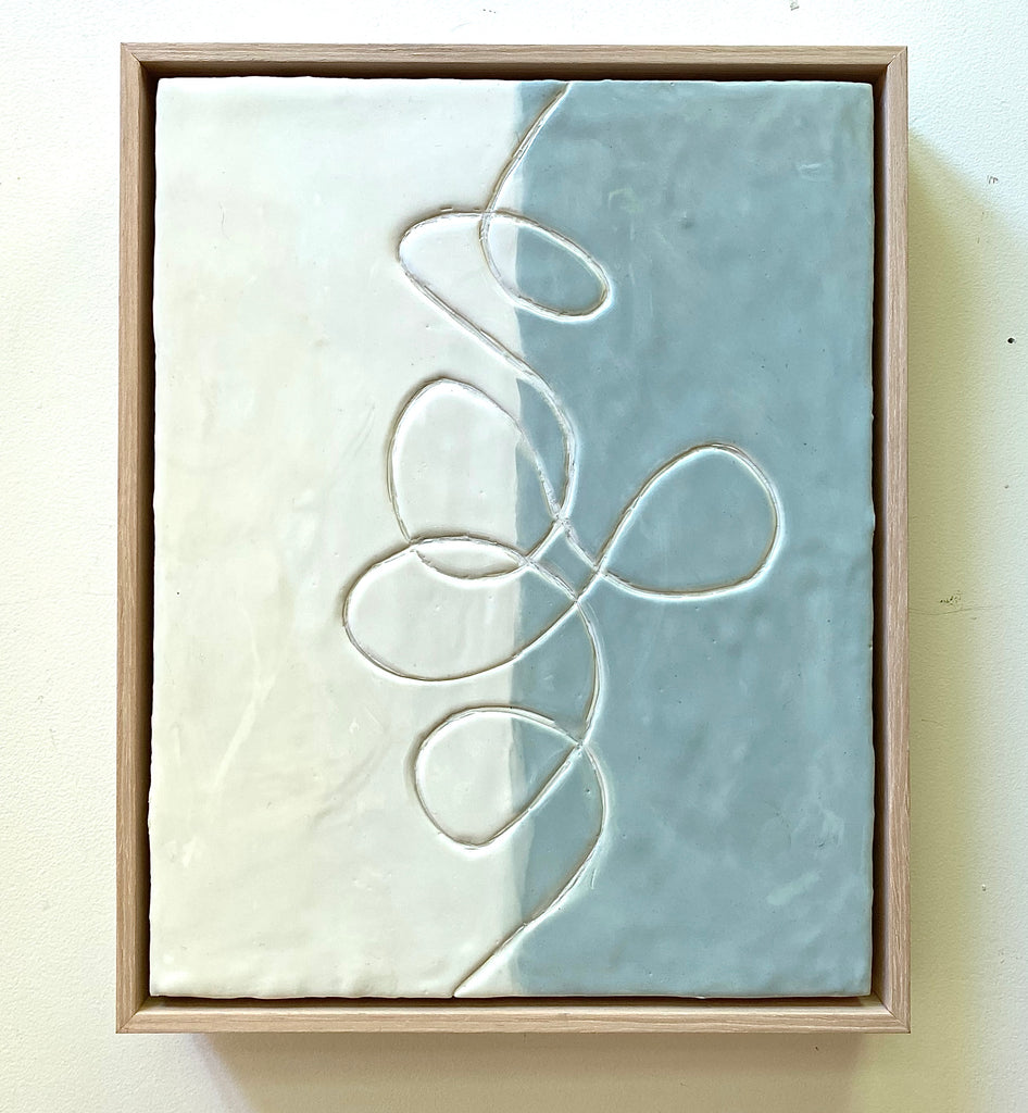 encaustic on wood, in natural wood floating frame