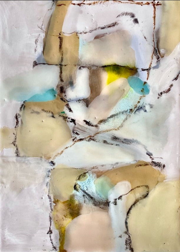 encaustic on cradled wood, in wood floater frame