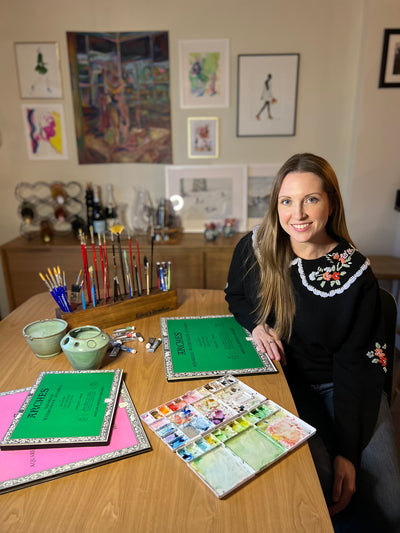 Erica Nordberg is an artist (and estates and trusts lawyer) living in Washington, D.C. She is originally from Massachusetts but has called D.C. home since 2010. She has enjoyed drawing and painting her whole life, minoring in visual arts in college. She primarily paints in watercolor and acrylic, with a love of bold, bright colors, and is most inspired by familiar places and objects that evoke joy, nostalgia, and playfulness. Her work spans from detailed watercolor illustrations to large abstract pieces, but the color palette and inspiration remain constant.