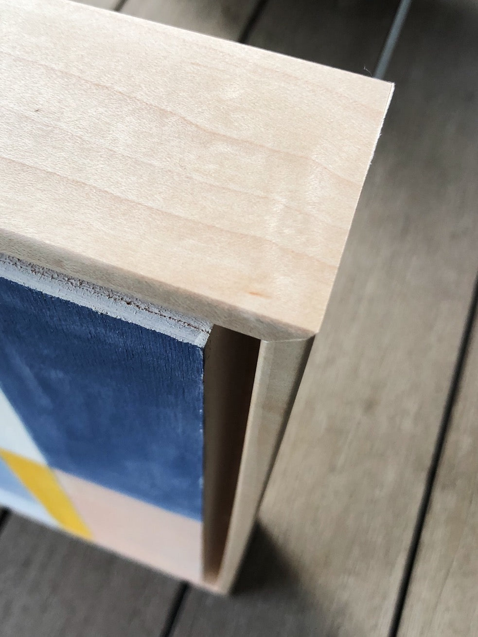 acrylic and gouache on gallery depth birch wood panel, framed in wood floater frame