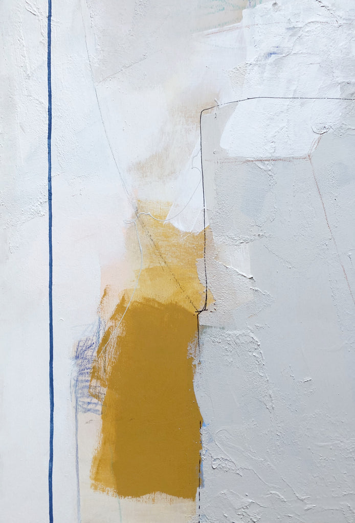 gouache, acrylic, fiber paste, oil pastel and pen on cradled wood panel