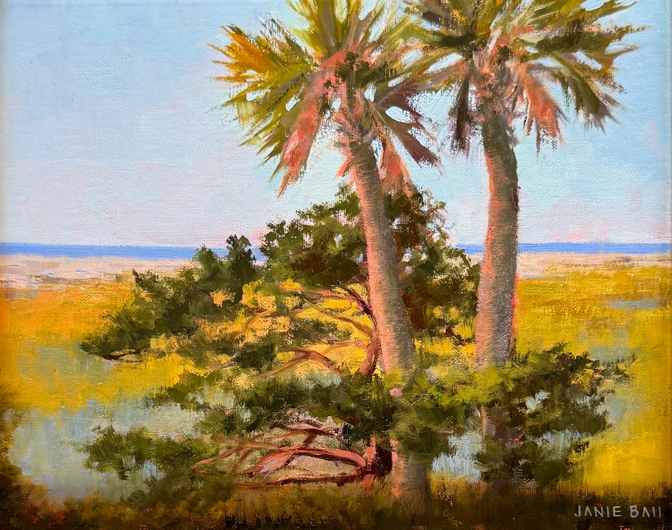 Janie Ball a Charleston native. The Rhode Island School of Design (RISD) graduate has had a successful marketing career winning ADDY and CASE Awards prior to returning to fine art full time. Her paintings are composed of bold thoughtful shapes of color which when visually combined by the viewer "paint" the image, be it en plein air, contemporary realism, or abstract expressionism. The Charleston Artist Collective member’s paintings are in private and corporate collections including the Belmond Charleston Place and MUSC Children’s Hospital. Janie’s work has been exhibited in solo and group shows, as far away as Portland, Maine. In Spring of 2017, her painting “Out of the Blue” was selected as the Community Choice Winner for ArtPop Street Gallery of Charleston, to be featured on an Adams Outdoor Advertising 14-foot x 48-foot billboard for a year. http://janieballpaints.com/