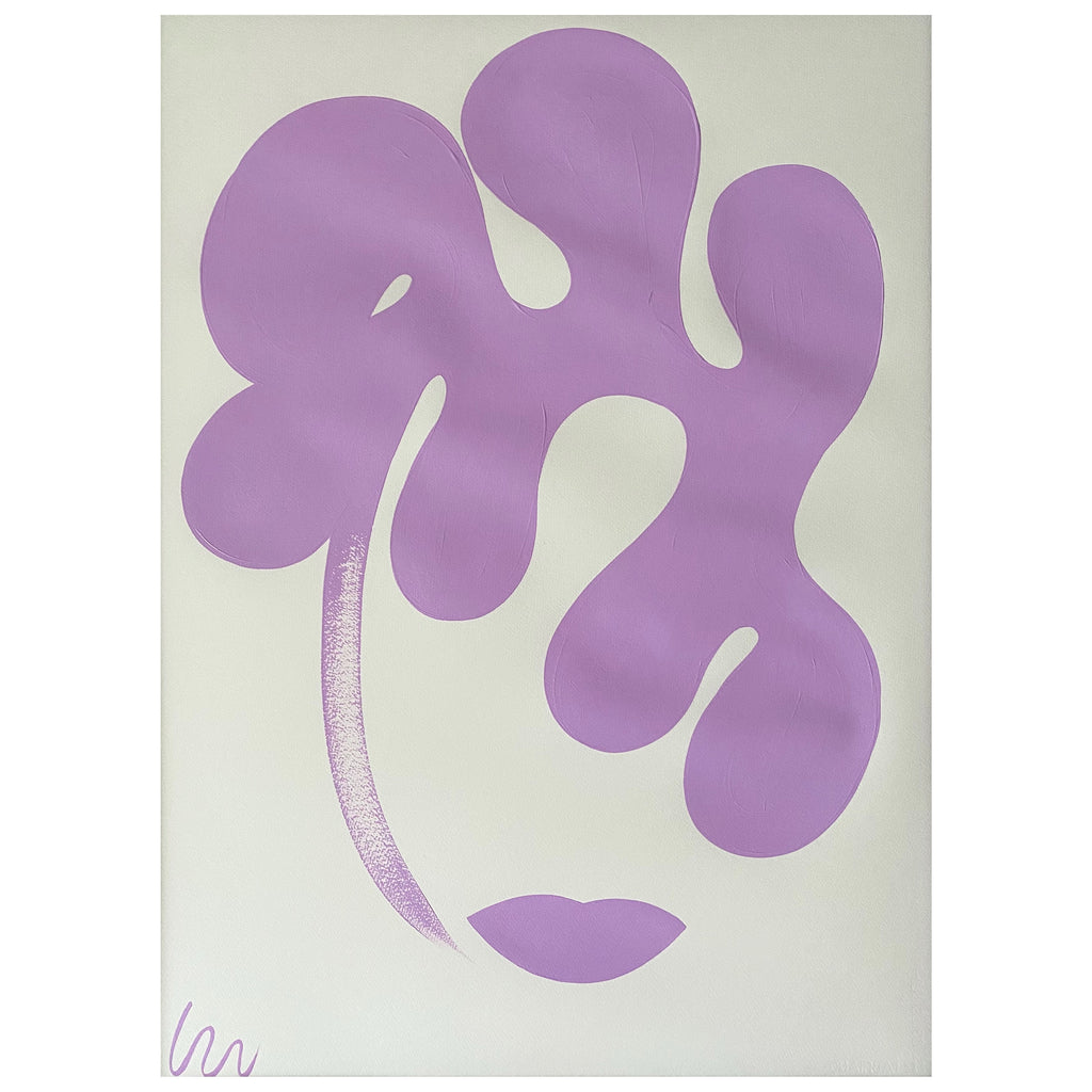 acrylic on paper, in lavender frame with museum glass